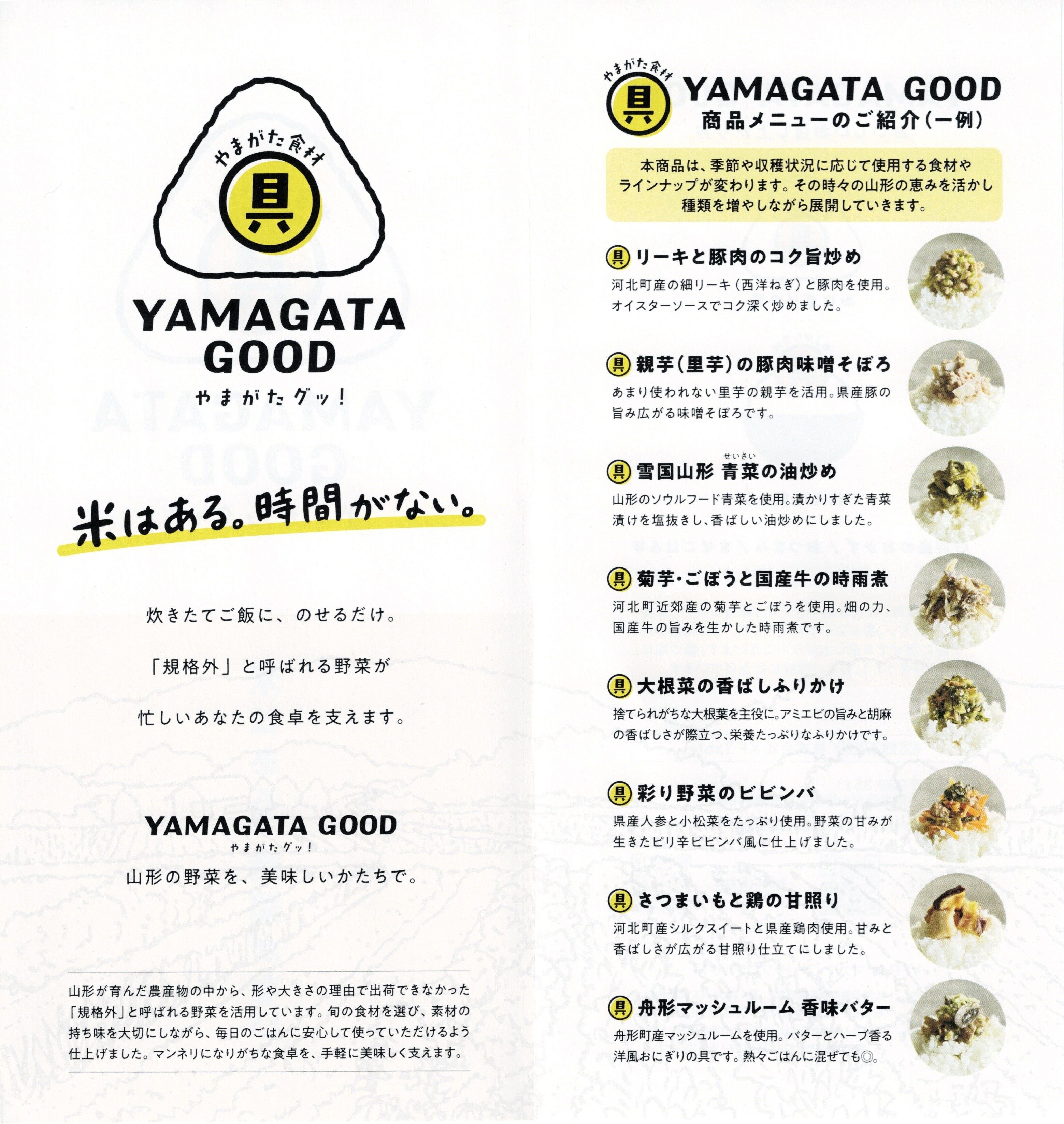 YAMAGATA GOODシリーズは、山形県内で発生する規格外野菜や未利用資源を活用し、