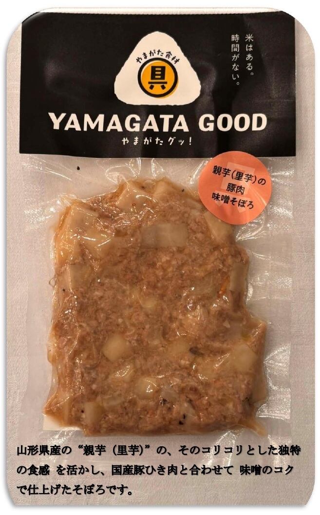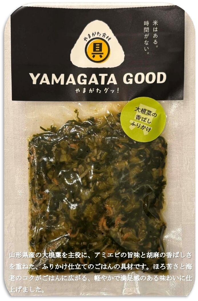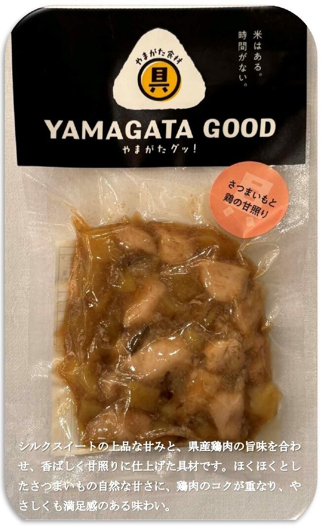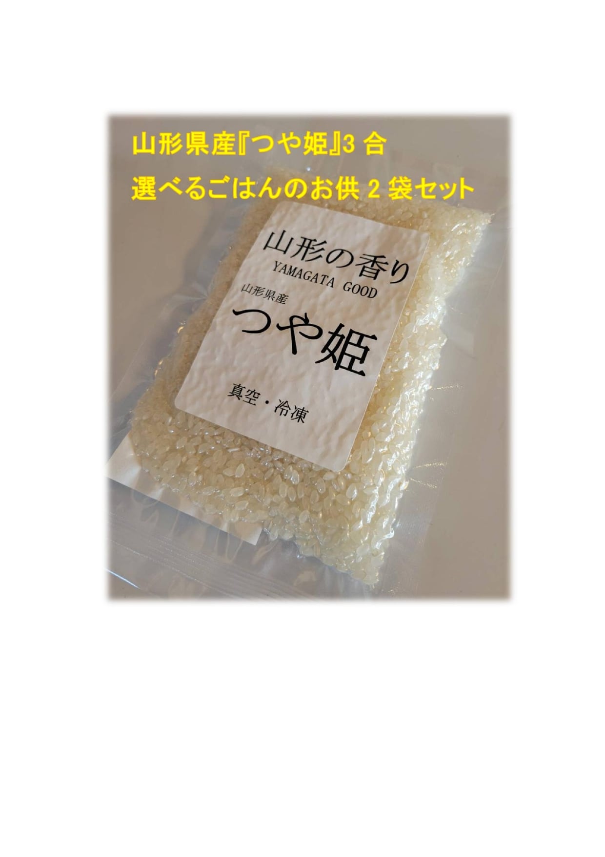 本セットは、山形県産『つや姫』を1合ずつ真空冷凍した3袋と、山形素材を活かしたごはんのお供(120g)を2袋選べる組み合わせ。